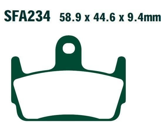 EBC SFA - kolor czarny. Klocki przeznaczone do montażu w skuterach i małych motocyklach. Widząc, że skutery osiągają co raz większe prędkości i cechuje je systematyczny wzrost wagi, EBC zdecydowało się zmienić technologię stosowaną w klockach SCO na bardziej nowoczesną z zastosowaniem kewlaru firmy Dupont. Nowe klocki EBC SFA zadowolą wszystkich użytkowników skuterów, także z powodu stosunkowo umiarkowanej ceny.