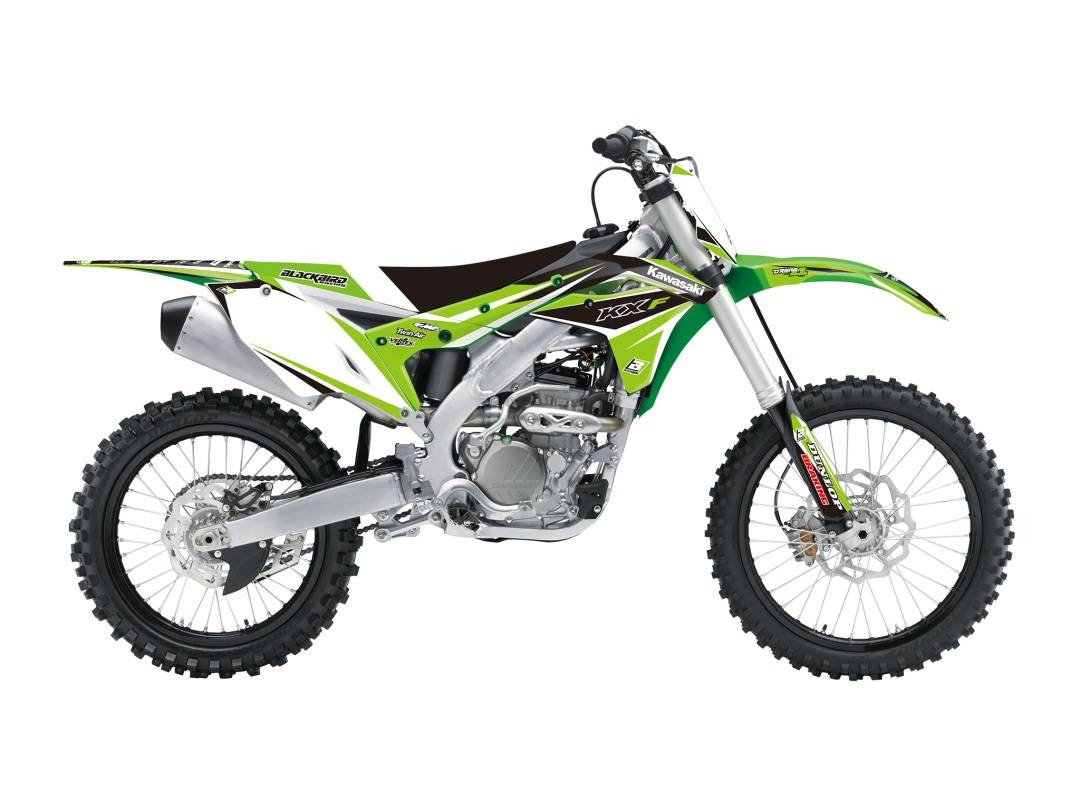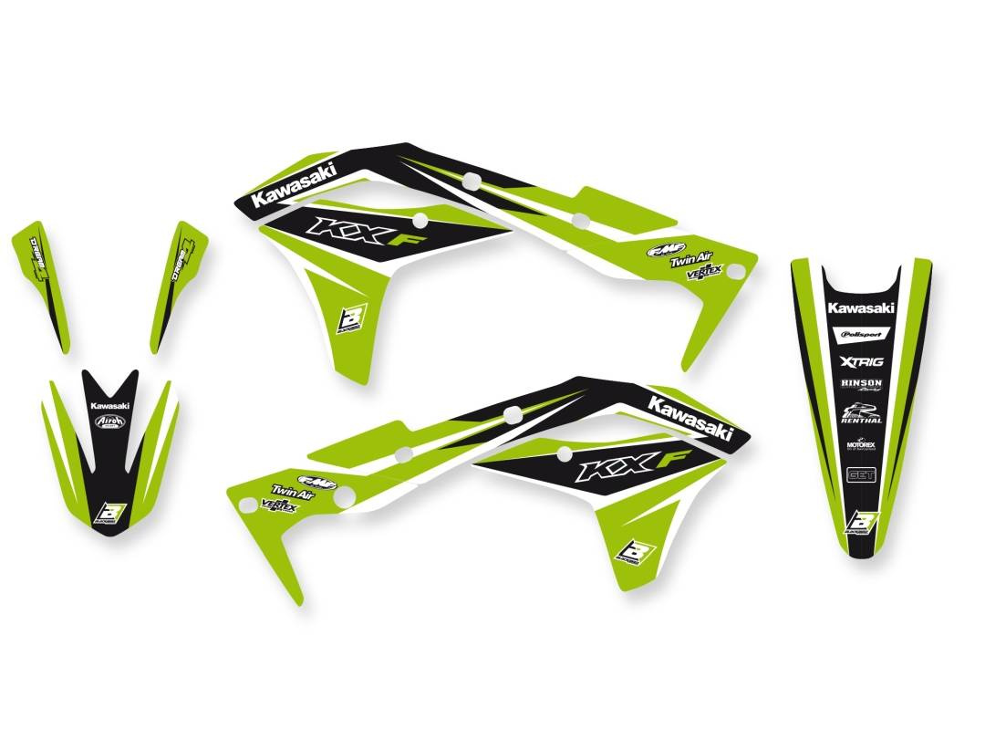 Komplet naklejek (oklein) + pokrowiec/poszycie na siedzenie kawasaki kxf 250 '17-'20, dream 4 kolor zielony/czarny