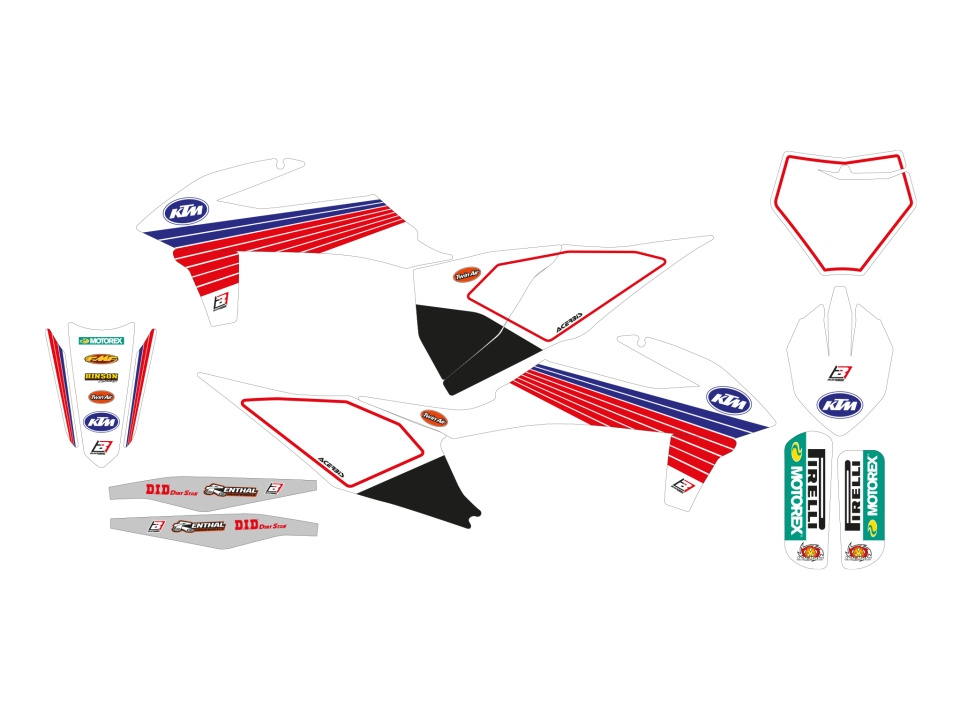 Komplet naklejek (oklein) ktm sx/sxf '19-'22, exc/excf '20-'23 retro, kolor biały/niebieski/czerwony