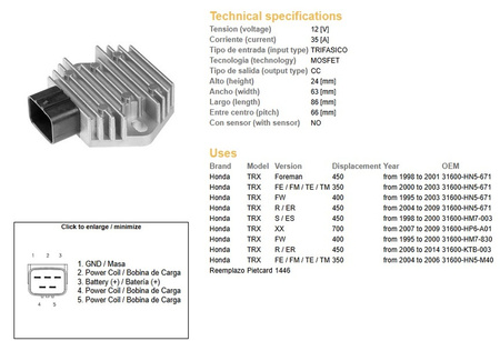 Dze regulator napięcia honda xl650v 01-07, trx350/400/450/700 (esr583) (31600-hn5-671) (35a)
