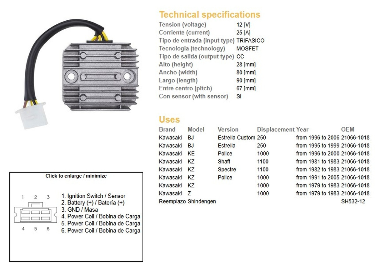 Dze regulator napięcia kawasaki gpz/kz/z 750/1000/1100 (sh532-12,esr140)