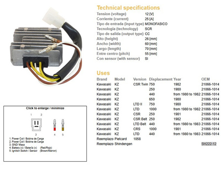Dze regulator napięcia kawasaki kz250/440/650, kz750ltd twin 80-82