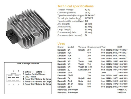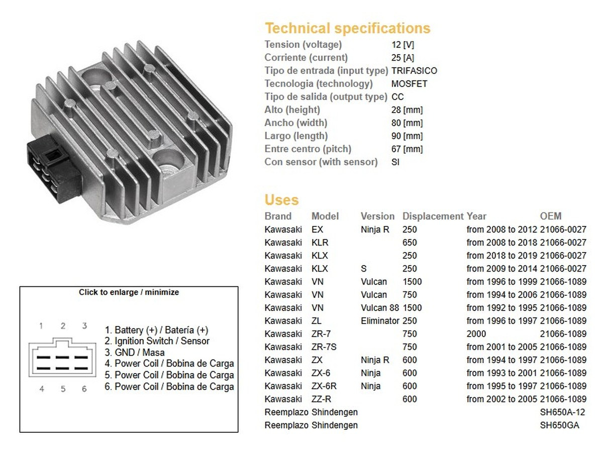 Dze regulator napięcia kawasaki vn/zl/zzr 600/zx 6r 95-97 (rgu-404,esr260) (21066-1089, 21066-027) (sh650ga, sh650a-12)