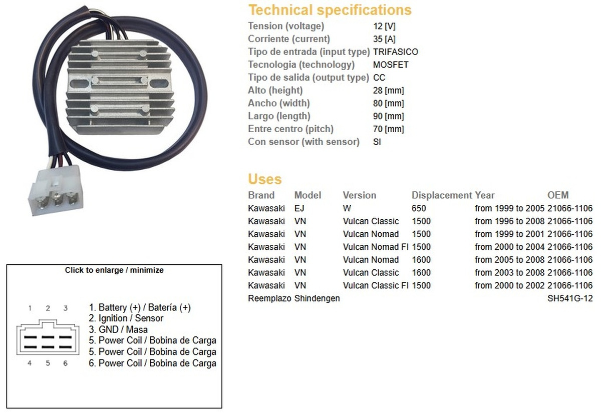 Dze regulator napięcia kawasaki vn1600 classic 03-08, vn1500 classic 96-08 (21066-1106) (esr264) (sh541g-12)