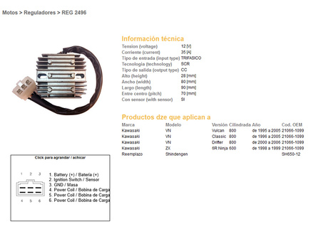 Dze regulator napięcia kawasaki vn800 95-05, classic 96-05, drifter 00-06, zx6r 98-99 (35a) (esr263) (oem:21066-1099) (sh650-12)