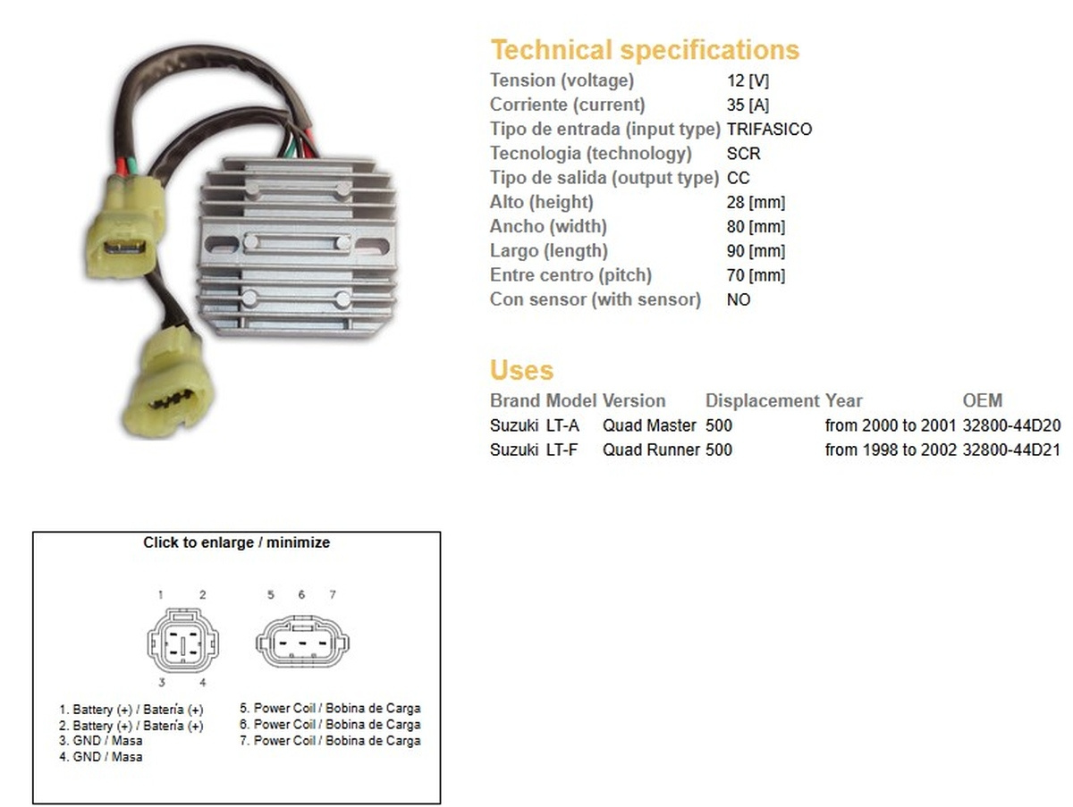 Dze regulator napięcia suzuki lt-a / lt-f 500 '98-02, (oem 32800-44d20) (oem 32800-44d21)