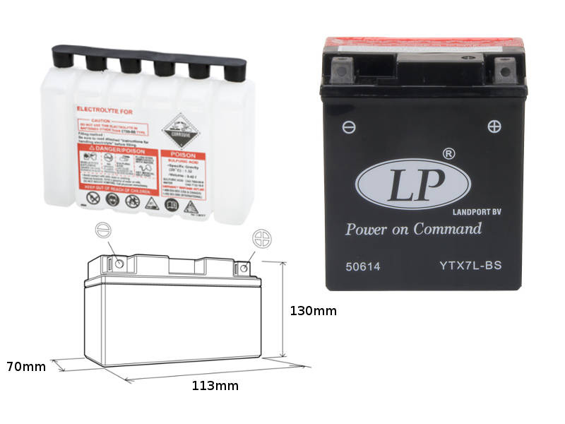 Landport akumulator ytx7l-bs 12v 6ah 113x70x130 (gtx7lbs) bezobsługowy - elektrolit osobno (6) ue2019/1148