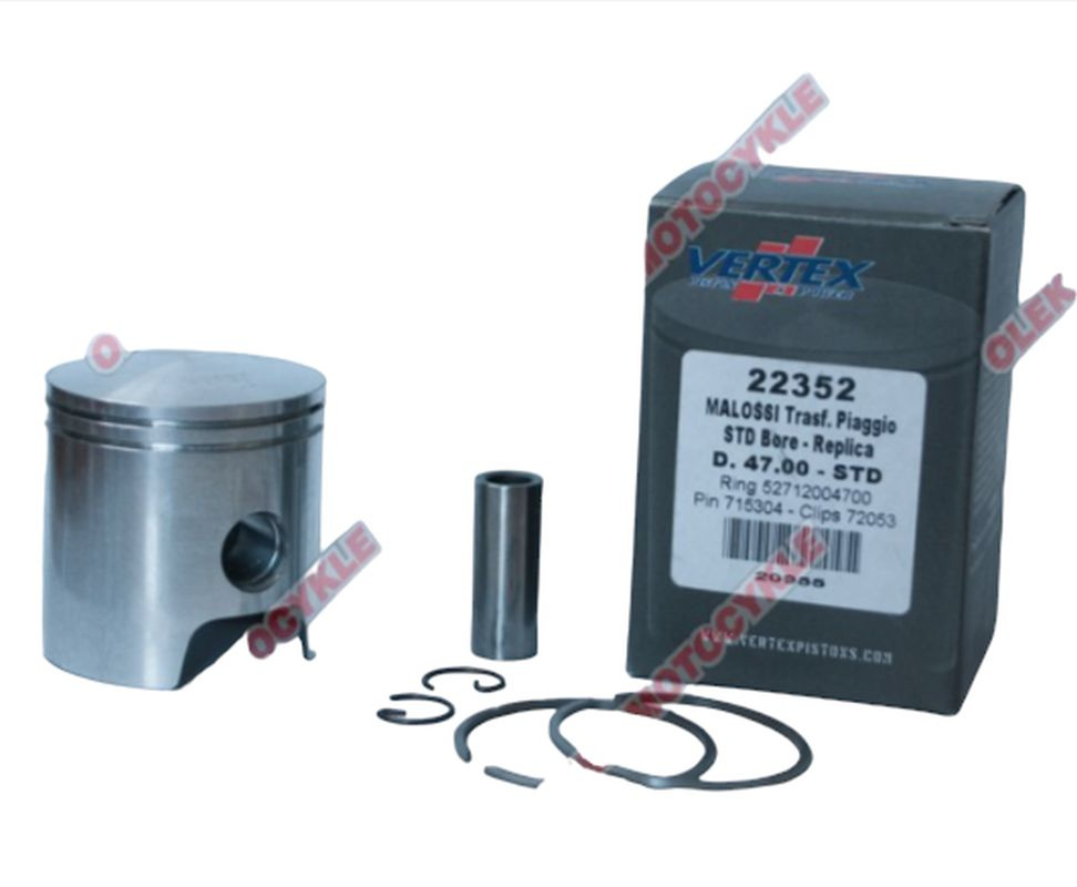 Vertex tłok malossi (piaggio, gilera) (48,00mm=+1,10) sworzeń 12mm (pierścienie 52712004800 x 2)