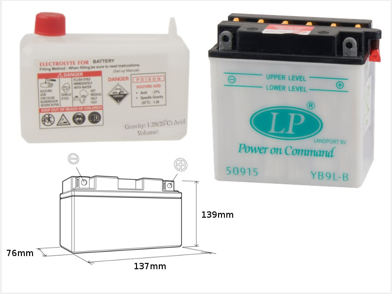 Landport akumulator yb9l-b 12v 9ah 137x76x140 (12n9-3b) obsługowy - elektrolit osobno (4) ue2019/1148