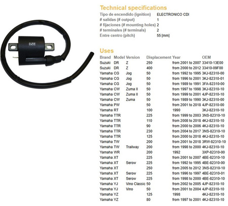 Dze cewka zapłonowa yamaha yfm 350/400/450/660 (3kj-82310-10)