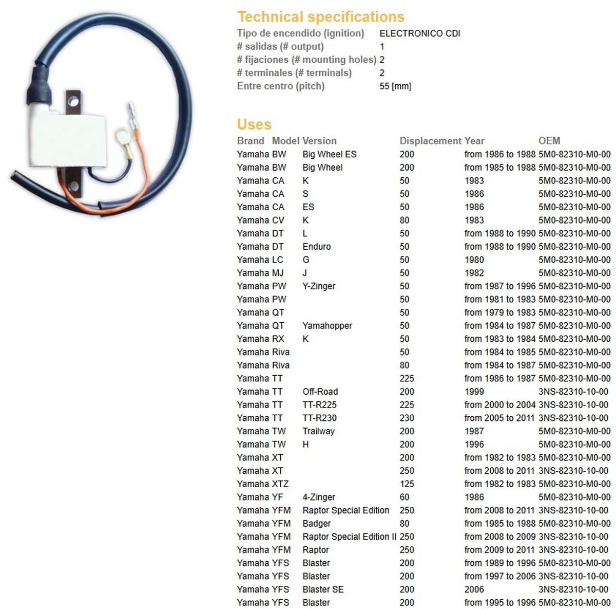 Dze cewka zapłonowa yamaha yfs 200 blaster '89-'06, yfm 250 raptor '09-'12