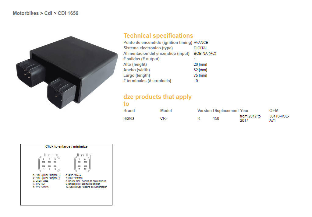 Dze moduł zapłonu cdi honda crf 150r '12-17 (30410-kse-a71)