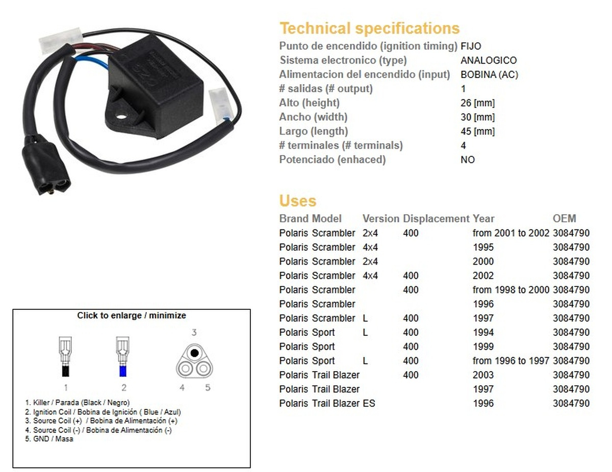 Dze moduł zapłonu cdi polaris scrambler 400 95-02, sport 400, trail blazer 400