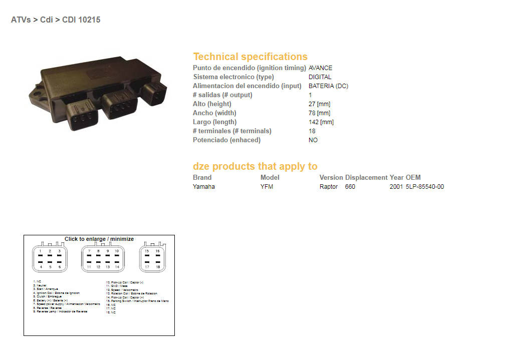 Dze moduł zapłonu cdi yamaha yfm660 raptor 01 (oem-5lp-85540-00)