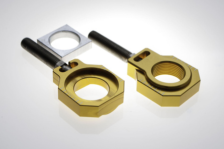 Napinacz tylnej ośki ze śrubą ktm sx/sxf 125-450 '13-19, husqvarna tc 125/250 / fc 250/350/450 '15-18 (śr. 25mm) kolor złoty (kpl. 2szt)