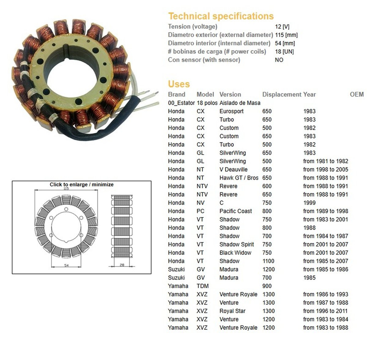 Uzwojenie alternatora stator honda cx 500/650 custom/turbo '82-83, ntv 650 '88-91, vt 700 '84-87, vt 750 '83-07, vt 1100 '85-07, xvz 1200/1300 venture '83-88, xvz 1300 royal star '96-11