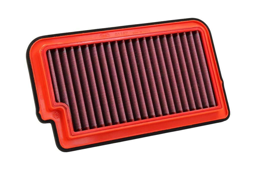 oferuje swoje bawełniane filtry powietrza w dwóch wersjach: "Standard", do codziennego użytku, oraz "Race", przeznaczony do użytku ulicznego/torowego  Oferta obejmuje większość obecnych pojazdów o różnej pojemności skokowej silnika i z różnych segmentów: enduro, crossover, custom, skuter, superbike, tourer, a nawet quad  Filtry powietrza nadają się do mycia i wielokrotnego użytku zaleca przeprowadzić czyszczenie filtra co około 20-25000 kilometrów Celem czyszczenia jest usunięcie zanieczyszczeń z powierzchni filtracyjnej, tak aby mógł on być używany przez cały okres eksploatacji pojazdu w którym został zamontowany   Filtr powietrza panelowy jest powszechnie nazywany "zamiennym filtrem powietrza" Jest on montowany w oryginalnej skrzynce powietrznej pojazdu w celu zastąpienia filtra powietrza OEM Jest on wykonany z materiałów o wysokiej wydajności, które pozwalają na zwiększenie przepływu powietrza w połączeniu z bardziej efektywną filtracją, gwarantując zatrzymanie wszystkich zanieczyszczeń o wielkości już od 7 mikronów (w porównaniu z filtrem OEM o wielkości 10 mikronów) Filtry powietrza są produkowane w systemie "Full Moulding", który umożliwia wykonanie charakterystycznego czerwonego filtra z jednej formy, bez połączeń spawanych, co zapobiega łatwemu pękaniu Guma stosowana w systemach filtrów powietrza ma długą żywotność, jest bardzo wytrzymała i ma optymalne właściwości przylegania do wszystkich kształtów airboxów Filtry są wykonane z wielowarstwowej gazy bawełnianej nasączonej olejem o niskiej lepkości, pokrytej siatką ze stopu pokrytego żywicą epoksydową, co zapewnia ochronę przed oparami benzyny i utlenianiem spowodowanym wilgotnością powietrza Wszystkie filtry powietrza są wstępnie naoliwione, można je myć i regenerować przy użyciu odpowiedniego zestawu do regeneracji BMC