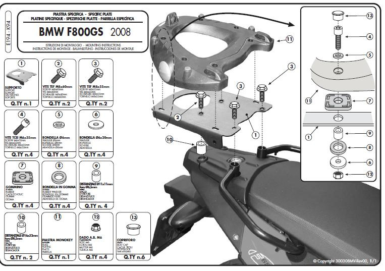 stelaż kufra centralnego bmw f 650gs / f 800gs (08-11) ( z płytą monokey )
