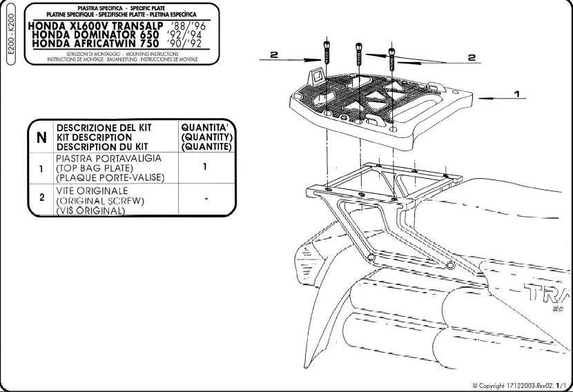 stelaż kufra centralnego honda xl 600rm/rl, xl 600v transalp (88-96), nx 650 dominator (92-94) ( z płytą monokey )