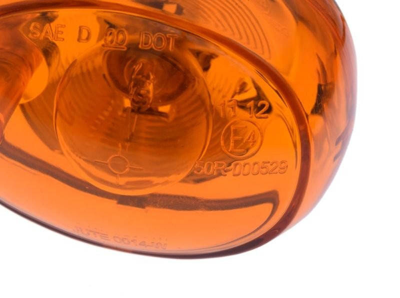 Kierunkowskaz 12V składa się z żarówki przezroczystej 12V 10W, pomarańczowego szkła, gniazda kierunkowskazu oraz czarnej obudowy.