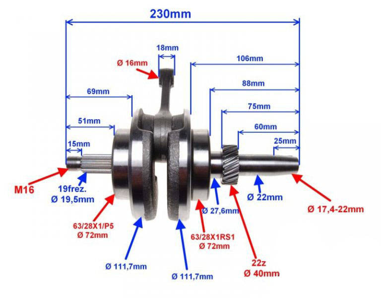 Odległość koła rozrządu do końca wału: 60 mm