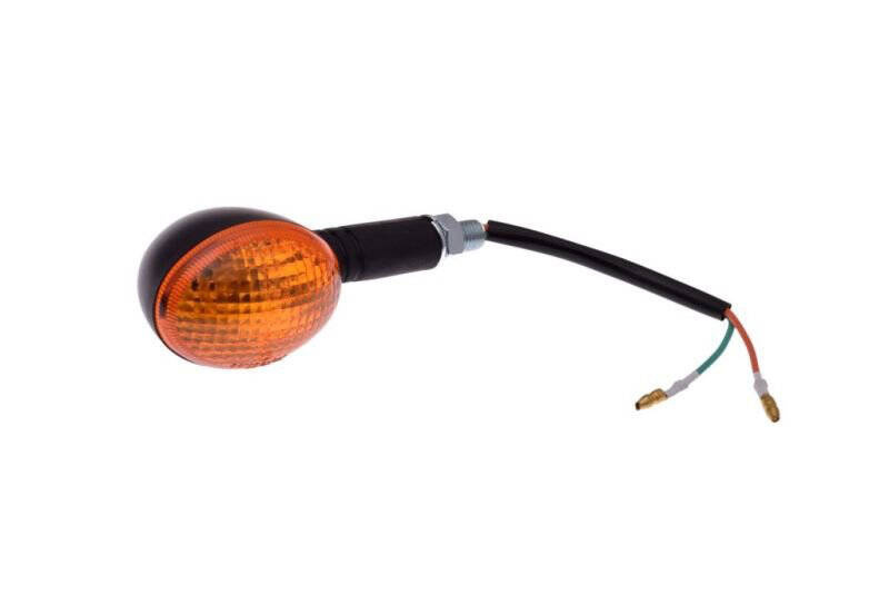 Zarówno obudowa, jak i klosz kierunkowskazu, zostały wykonane z wytrzymałego plastiku, co gwarantuje lekkość konstrukcji oraz odporność na warunki atmosferyczne. Gwint M10 x 1.25 umożliwia łatwy montaż na różnorodnych typach pojazdów.