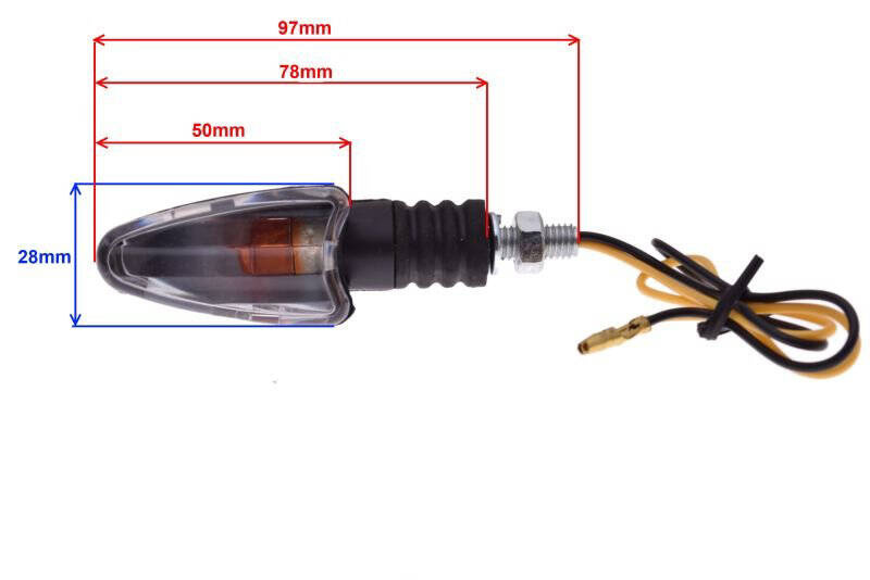 Oferujemy lewy kierunkowskaz przedni, który charakteryzuje się czarną obudową i jasnym kloszem, zaprojektowany do pracy z żarówkami o napięciu 12V i mocy 10W. Wykonany z trwałego plastiku, zarówno obudowa, jak i klosz zapewniają solidną konstrukcję, gwarantując niezawodność w różnorodnych warunkach. Należy pamiętać, że produkt nie posiada homologacji. Gwint kierunkowskazu został precyzyjnie wykonany w rozmiarze M8 x 1.25, a długość przewodu wynosi 240mm, zapewniając wygodę montażu. Ten lewy kierunkowskaz doskonale wkomponuje się w stylistykę pojazdu, podkreślając jego nowoczesny wygląd.