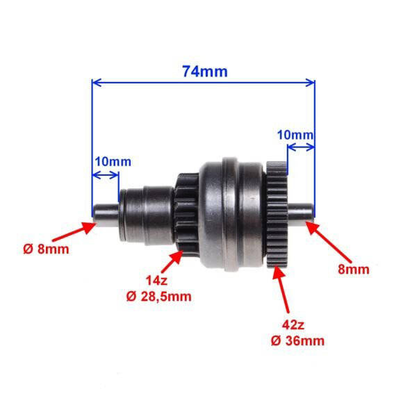 Sprzęgło jednokierunkowe rozrusznika - Bendix dedykowane do skuterów marki TGB stanowi niezastąpiony element mechanizmu uruchamiania silnika. Posiada małe koło z 14 zębami oraz duże koło z 42 zębami, zapewniając niezawodną pracę rozrusznika. Model ten jest przeznaczony do rozruszników 9-zębowych.