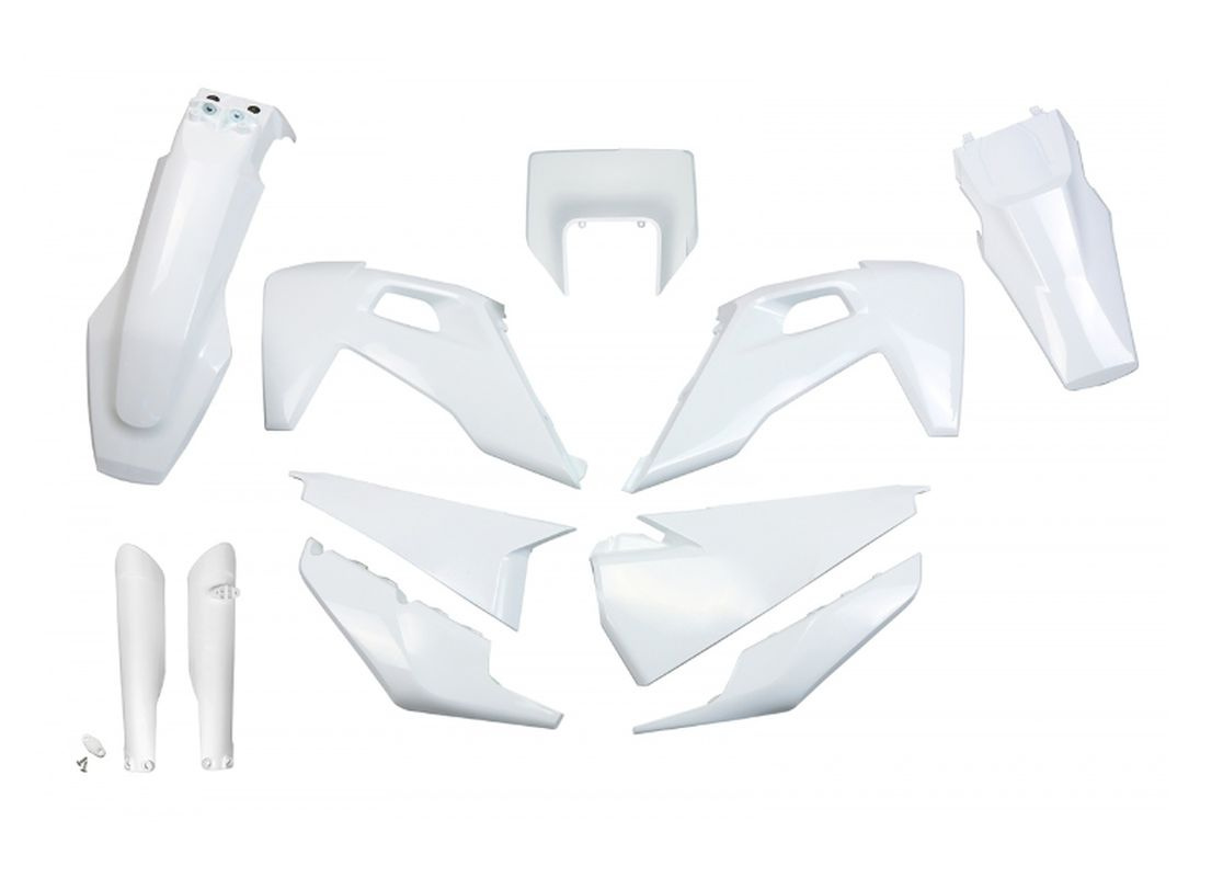 Komplet Plastików Z Osłonami Teleskopów (Amortyzatorów) Husqvarna Tx / Te 125 / 150 / 250 / 300 '20-'22, Fe 250 / 350 / 450 / 501 '20-'23 Kolor Biały