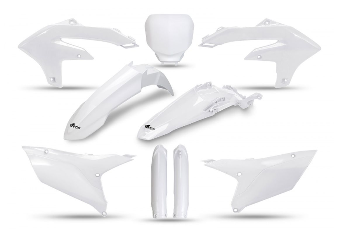 Komplet plastików UFO to popularny wybór wśród motocyklistów crossowych, ceniących sobie wysoką jakość i możliwość personalizacji wyglądu swojego motocykla. W skład zestawu wchodzą wszystkie elementy niezbędne do wymiany starych, zużytych plastików, w tym: