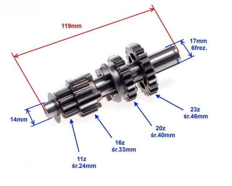 - Wałek sprzęgłowy skrzyni biegów silnik 110 ccm 4T