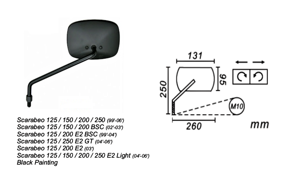 - Lusterko lewe do skuterów aprilia scarabeo 125 – 250 cm.