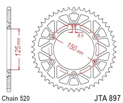 Zębatka  Napędzana Hybrydowa Stal/Alu Jt Jtx897.50org, 50z Rozmiar 520 Pomarańczowa