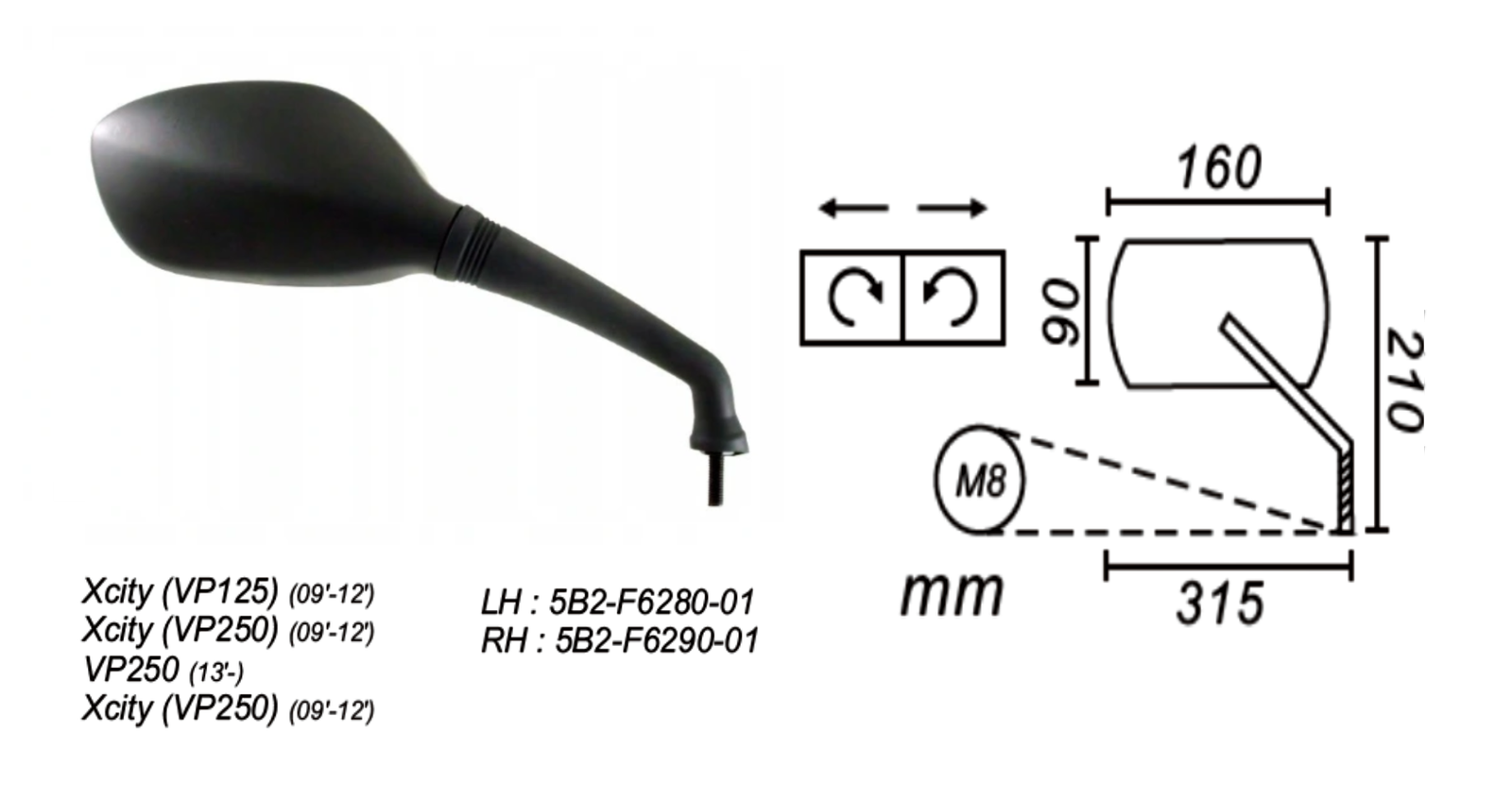 Lusterko Prawe Yamaha Xcity Vp125/250 2009-2012 Power Force