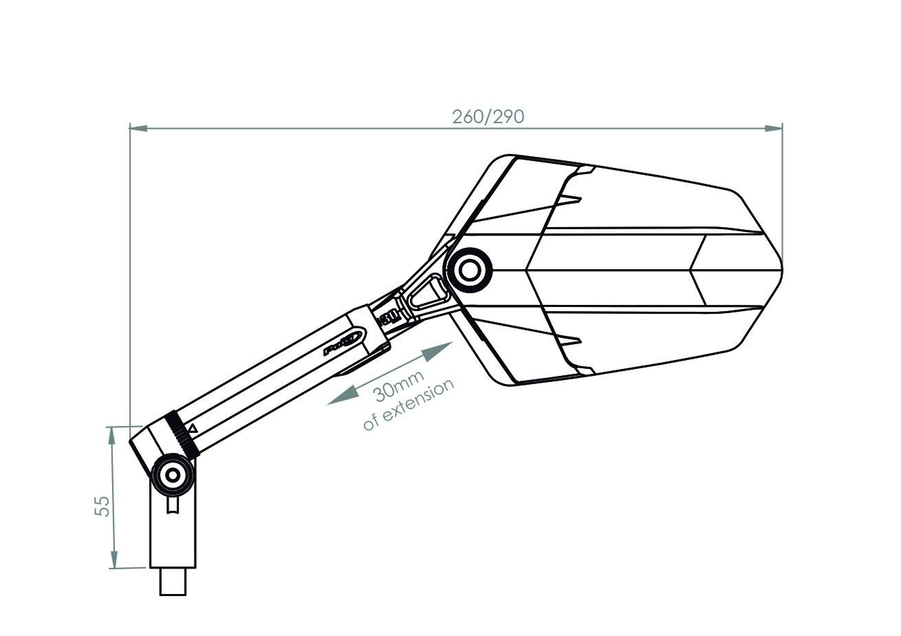 Lusterko Puig Hi-Tech Explorer (Prawe) Aluminiowe Na Czarnym Ramieniu