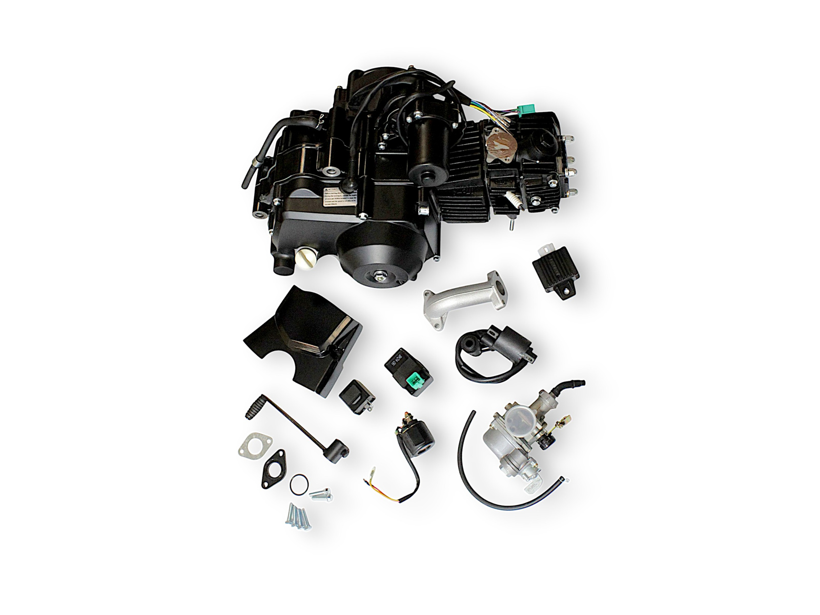 - Wymiary: SILNIK KOMPLETNY ATV 110 CCM Kod produktu: NS150FMH-200024 Charakterystyka produktu: · Średnica cylindra 52,40 mm · Zmiana biegów 3 + 1 · Automatyczne sprzęgło pojedyncze, z cewką zapłonową, CDI, prostownik, przekaźnik rozruchu, przekaźnik kierunkowskazów, gaźnik PZ19, z pedałem zmiany biegów i rurą dolotową Dane techniczne: Model: 153FMH Pojedynczy cylinder, 4 suwy, chłodzenie powietrzem, Poziomy wyporność: 106,7 ml Wymiar: 460 * 300 * 260 mm Waga netto: 21 kg Max; moment obrotowy: 7,2 / 5000 Nm / r / min Współczynnik kompresji: 9,0: 1 Otwór i skok: 52,4 * 49,5 mm Metoda zapłonu: CDI Metoda smarowania: rozprysk ciśnienia Min