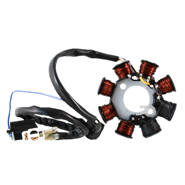Stojan alternatora przeznaczony do skutera Kymco Agility 4T EU3 125 cc. Wysokiej jakości część elektryczna, która odpowiada za generowanie energii i stabilne ładowanie akumulatora podczas pracy silnika.