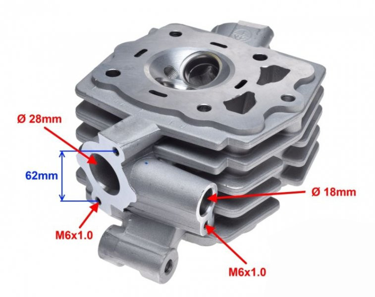 • Głowica cylindra do ATV 200 (Shineray, Kingway, Loncin, Bashan, Jialing, Kinroad). Wysokiej jakości zamiennik. Komora spalania 62 mm, gwint świecy M12x1.25, wysokość 82 mm. Wymiary montażowe jak w oryginale.