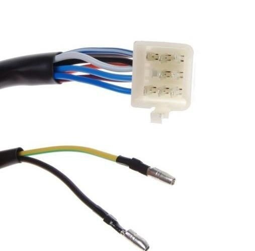 Kostka 8 pinów męskich: Przełącznik wyposażony jest w kostkę z 8 pinami męskimi, która umożliwia podłączenie różnych funkcji elektrycznych skutera. Dzięki tej kostce możliwe jest połączenie przełącznika z układem elektrycznym pojazdu, takimi jak oświetlenie (światła, kierunkowskazy), klakson, a także czujnik stopu.