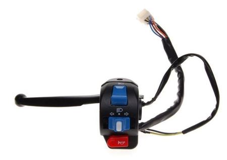 Przełącznik zespolony lewy do skutera 2T lub 4T to element, który łączy w sobie funkcje sterowania różnymi urządzeniami elektrycznymi w skuterze, umożliwiając kierowcy wygodne i bezpieczne użytkowanie pojazdu. Jest to część układu sterowania umieszczona na lewej stronie kierownicy, która kontroluje kluczowe funkcje, takie jak światła, kierunkowskazy czy sygnał hamulca.