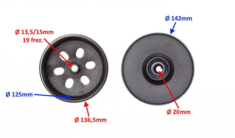 Kompletne sprzęgło odśrodkowe CVT przeznaczone do skuterów i pojazdów z silnikami GY6 125 ccm oraz GY6 150 ccm. Zestaw zawiera sprzęgło odśrodkowe, dzwon sprzęgła oraz talerze, dzięki czemu jest gotowy do bezpośredniego montażu bez konieczności dokupowania dodatkowych elementów.