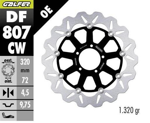 GALFER TARCZA HAMULCOWA PRZÓD DUCATI DIAVEL 1200 '11-; HYPERMOTARD 939/950 '13-; MONSTER 796/797/821/1200 '10-; MULTISTRADA 937/950/1200 '10-; X DIAVEL 1260 '19- (WAVE FLOATING) (320X72X4,5MM) to solidny produkt marki GALFER, przeznaczony do zastosowań motocyklowych.