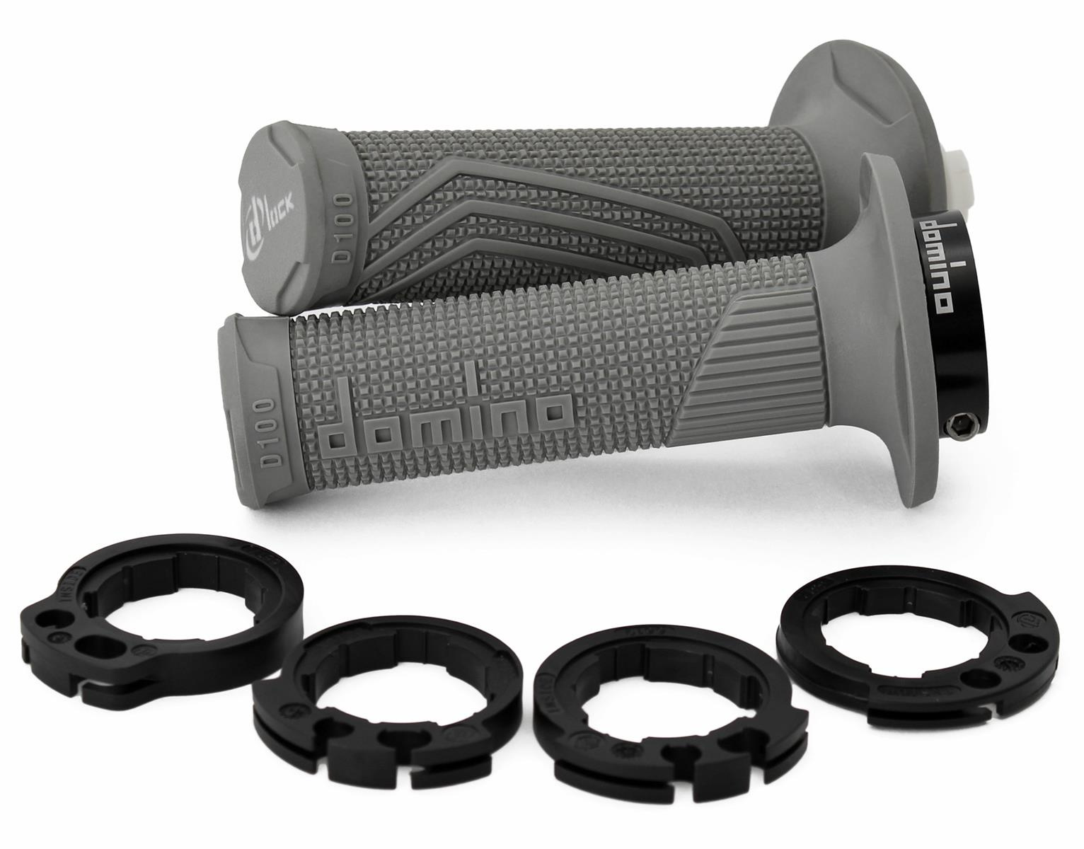 DOMINO MANETKI (GRIPY) OFF ROAD D-LOCK (Z ADAPTERAMI ROLGAZU - KTM, HUSQVARNA, GASGAS, HONDA, KAWASAKI, SUZUKI, YAMAHA) KOLOR SZARY to solidny produkt marki DOMINO, przeznaczony do zastosowań motocyklowych.
