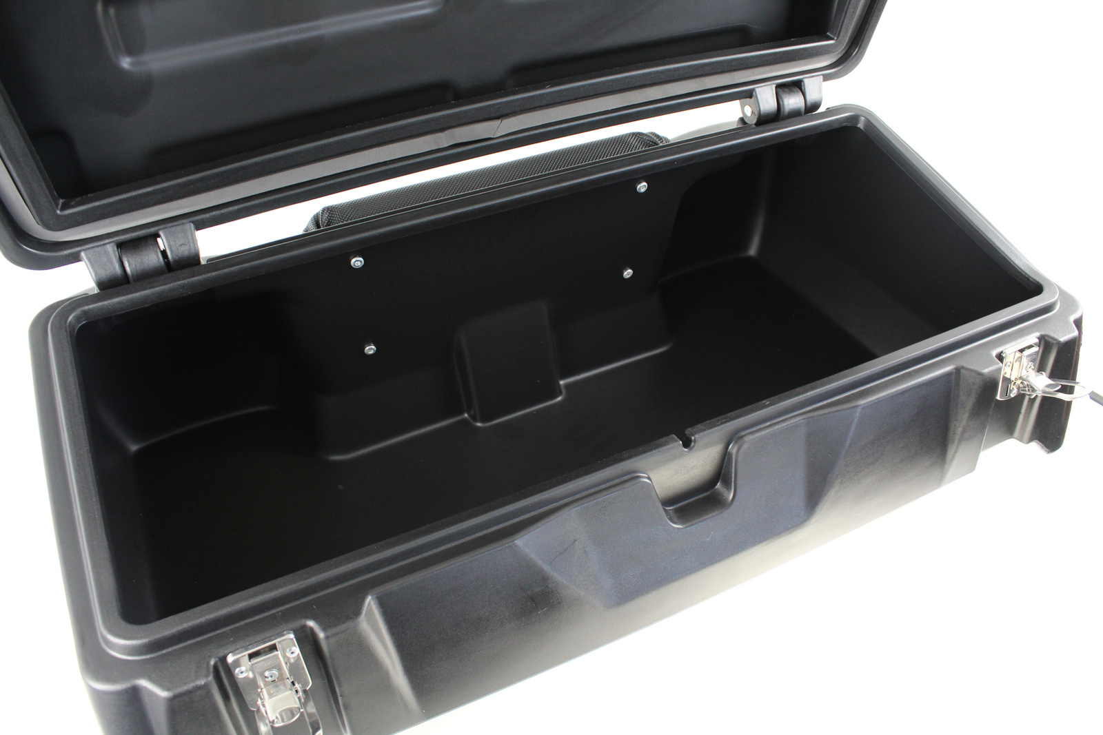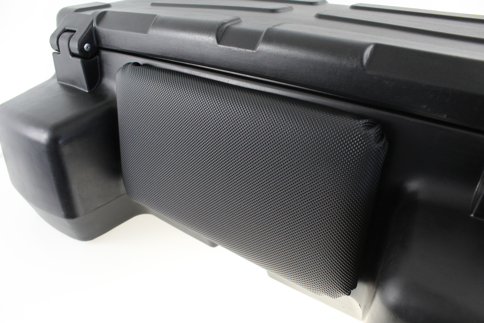 - Tylny kufer ATV z oparciem dla pasażera. Pasuje do większości quadów. Wymiary 90×64×34 cm, stalowe mocowania, dwa zamki na klucz i trzpienie 6 mm. Wytrzymała konstrukcja z tworzywa sztucznego.