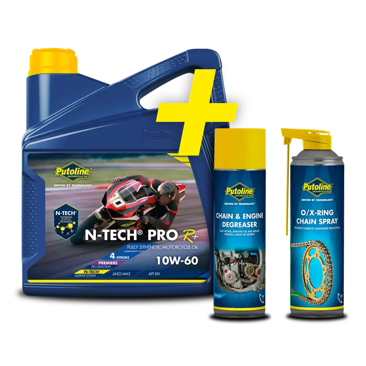 PUTOLINE OLEJ SILNIKOWY 4T 100% SYNTETYK N-TECH® PRO R+ 10W60 4L (AKC)+ SMAR DO ŁAŃCUCHA O/X-RICHAIN SPRAY 500ML + CHAIN AND ENGINE DEGREASER 500ML