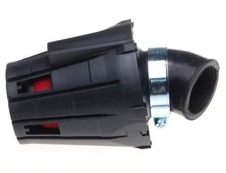 Stożkowy filtr powietrza o średnicy 35 mm umieszczony w plastikowej osłonie.