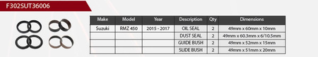 ZESTAW NAPRAWCZY AMORTYZATORA PRZEDNIEGO SUZUKI RMZ 450 '15-'17, (USZCZELNIACZE OLEJOWE X 2, PYŁOWE X 2, PANEWKI X 4) (SERVICE KIT) (ZAWIESZENIE 49MM)