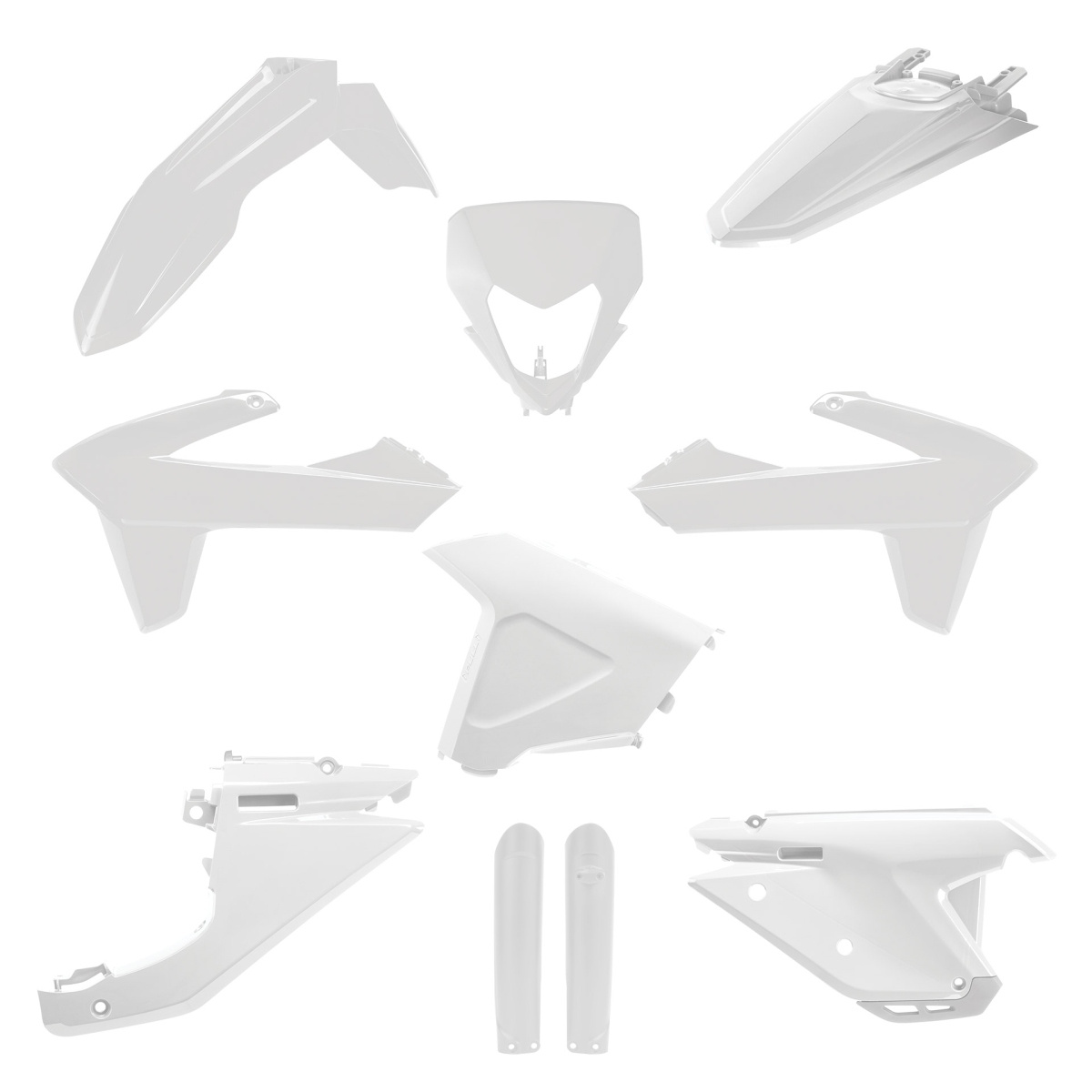 POLISPORT WYPRZEDAŻ KOMPLET PLASTIKÓW (FULL KIT) SHERCO SE / SEF '25 W ZESTAWIE OSŁONA LAMPY (8681100002) I OSŁONY AMORTYZATORÓW (8398600002) KOLOR BIAŁY to solidny produkt marki POLISPORT, przeznaczony do zastosowań motocyklowych.