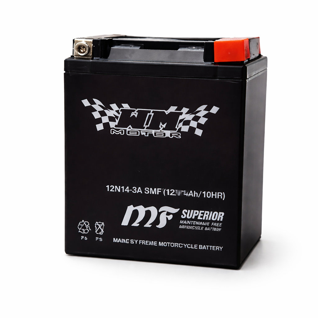 - Akumulator motocyklowy WM Motor 12N14-3A 12V o pojemności 14Ah. Technologia SMF – bezobsługowy i szczelny. Zapewnia pewny rozruch i stabilne zasilanie instalacji elektrycznej motocykla.