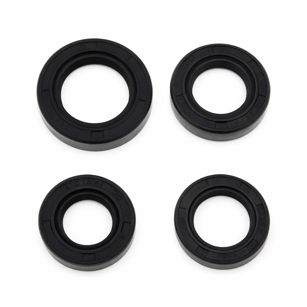Kompletny zestaw uszczelniaczy silnika przeznaczony do skuterów z silnikiem GY6 50 4T (139QMB). Zestaw obejmuje uszczelniacze wału korbowego (lewy i prawy) oraz uszczelniacze przekładni.